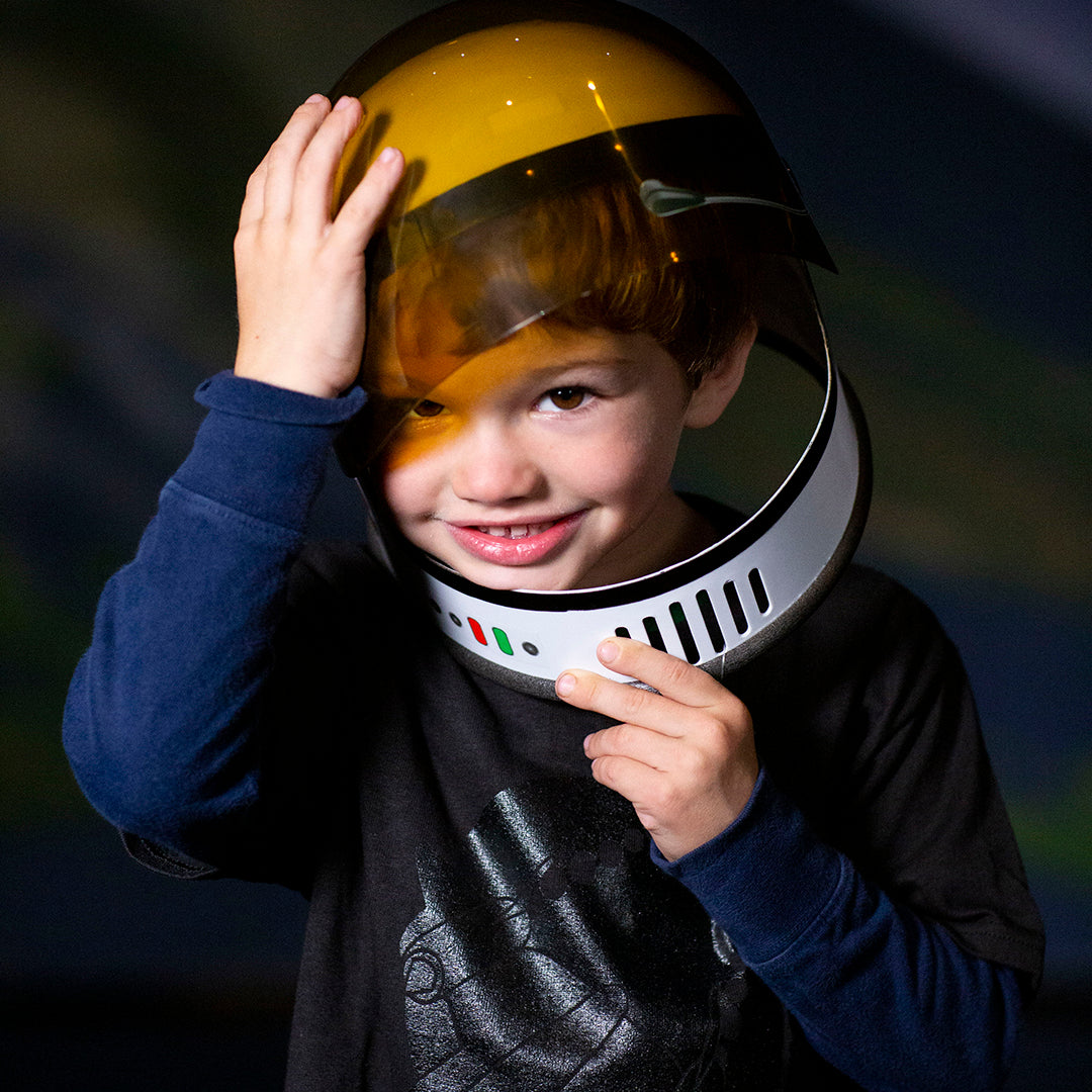 This helmet is perfect for those aspiring astronauts who take their dress-up seriously! It comes complete with a tinted movable visor, full-on USA flag, iconic NASA logo, and tons of colorful accents.