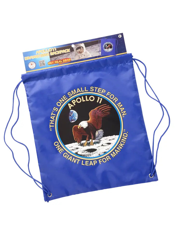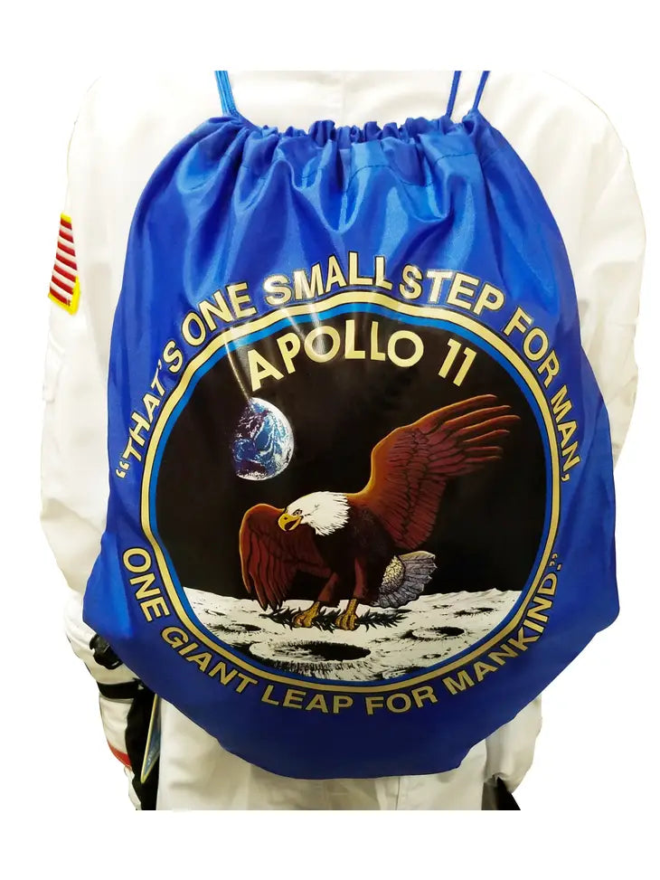 Show your admiration for the first humans to the moon by carrying your stuff in style! The Apollo 11 Drawstring Backpack is a stellar choice to join you on your daily adventures. Featuring the iconic Apollo 11 mission graphic and easy-to-use drawstrings, it'll be a flying success every time you reach for it! Blast off!