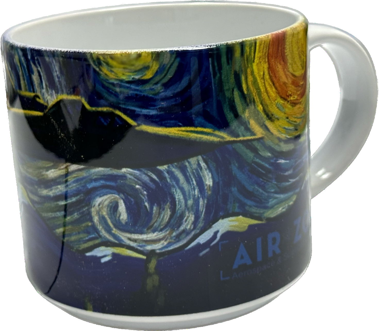 For an out-of-this-world experience, get your hands on this Starry Night SR-71 Metro Coffee Mug! Inspired by Van Gogh's iconic masterpiece, this mug is exclusive to the Air Zoo - truly a one-of-a-kind item! Sip your favorite brew and join the high-flying SR-71 club. Start your engines!