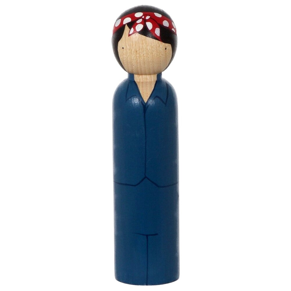 This Rosie the Riveter doll is 7" tall and comes packaged in her own box.