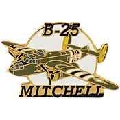 This metal and enamel pin features the B-25 Mitchell. Measures approx. 1.25" across and comes with two butterfly clasps. Perfect for jackets, hats, bags, and more!