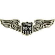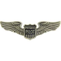 Show off your piloting status with these dark silver metal Private Pilot wings. Measures approx. 2 7/8" and comes with two pinbacks.