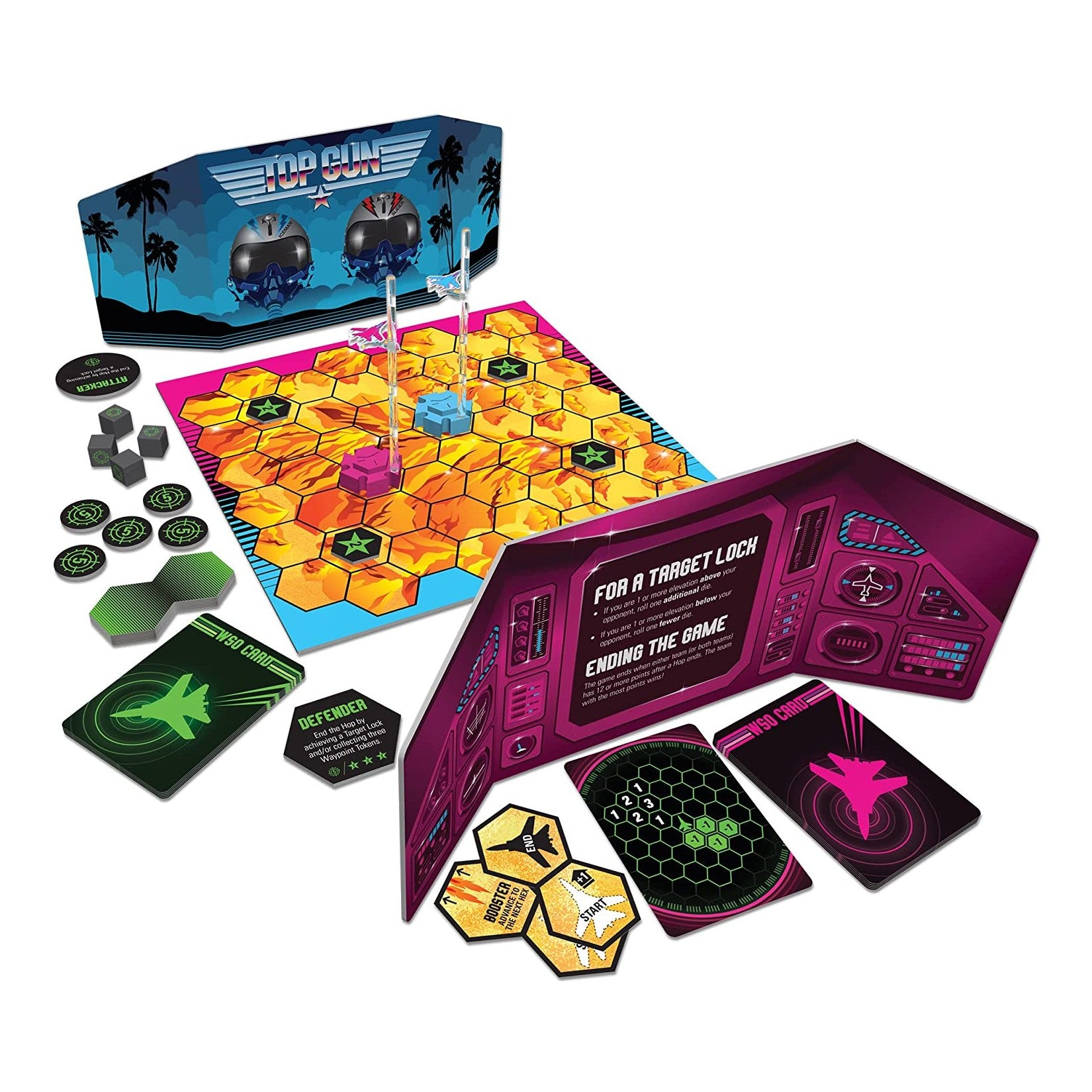 The Top Gun Strategy Game puts players in the pilot seats of Team Maverick/Goose and Team Iceman/Slider. Each team takes on the other during an intense air-combat training exercise. Pilots must strategically maneuver their planes and coordinate with their Weapons System Operator. Conducting intense gravity-defying aerial maneuvers and securing a valuable target lock on their opponent will secure a swift victory.